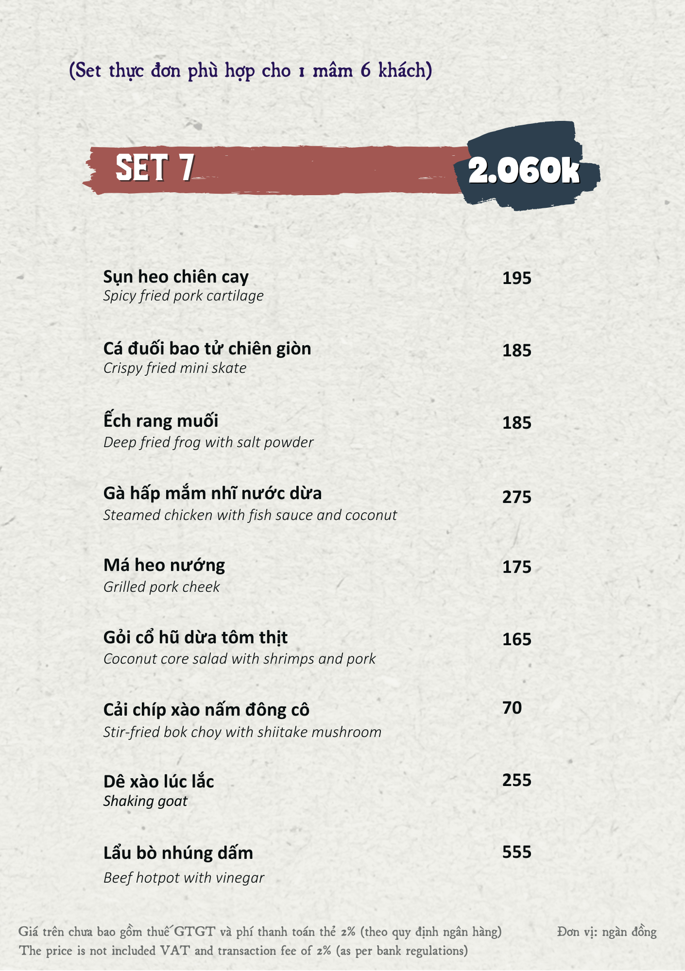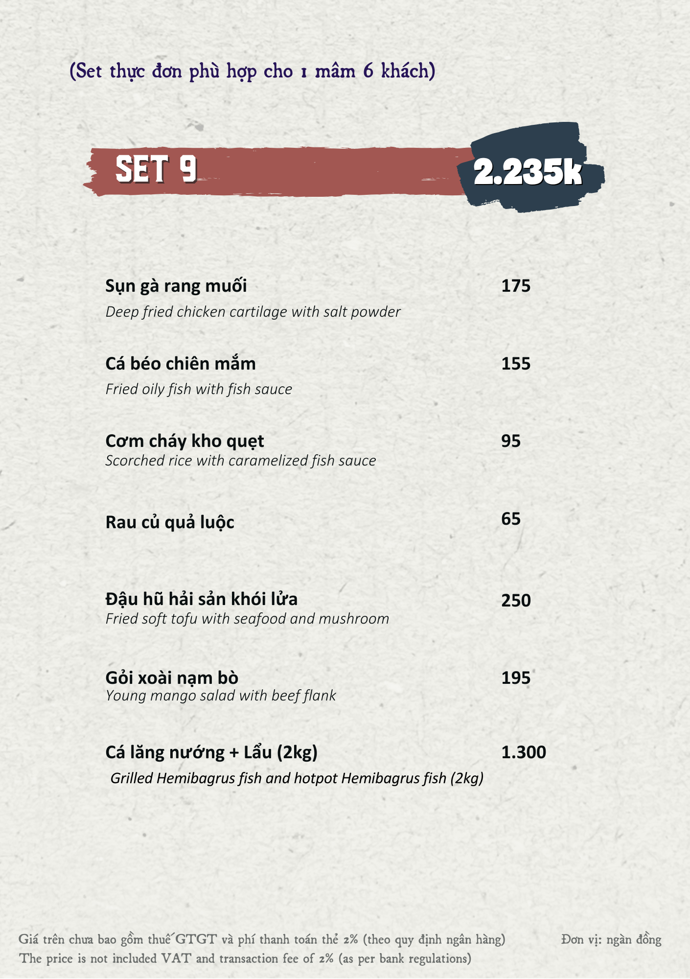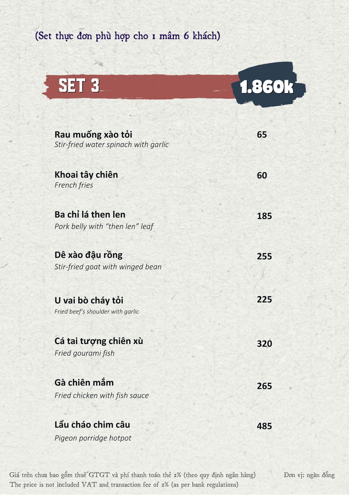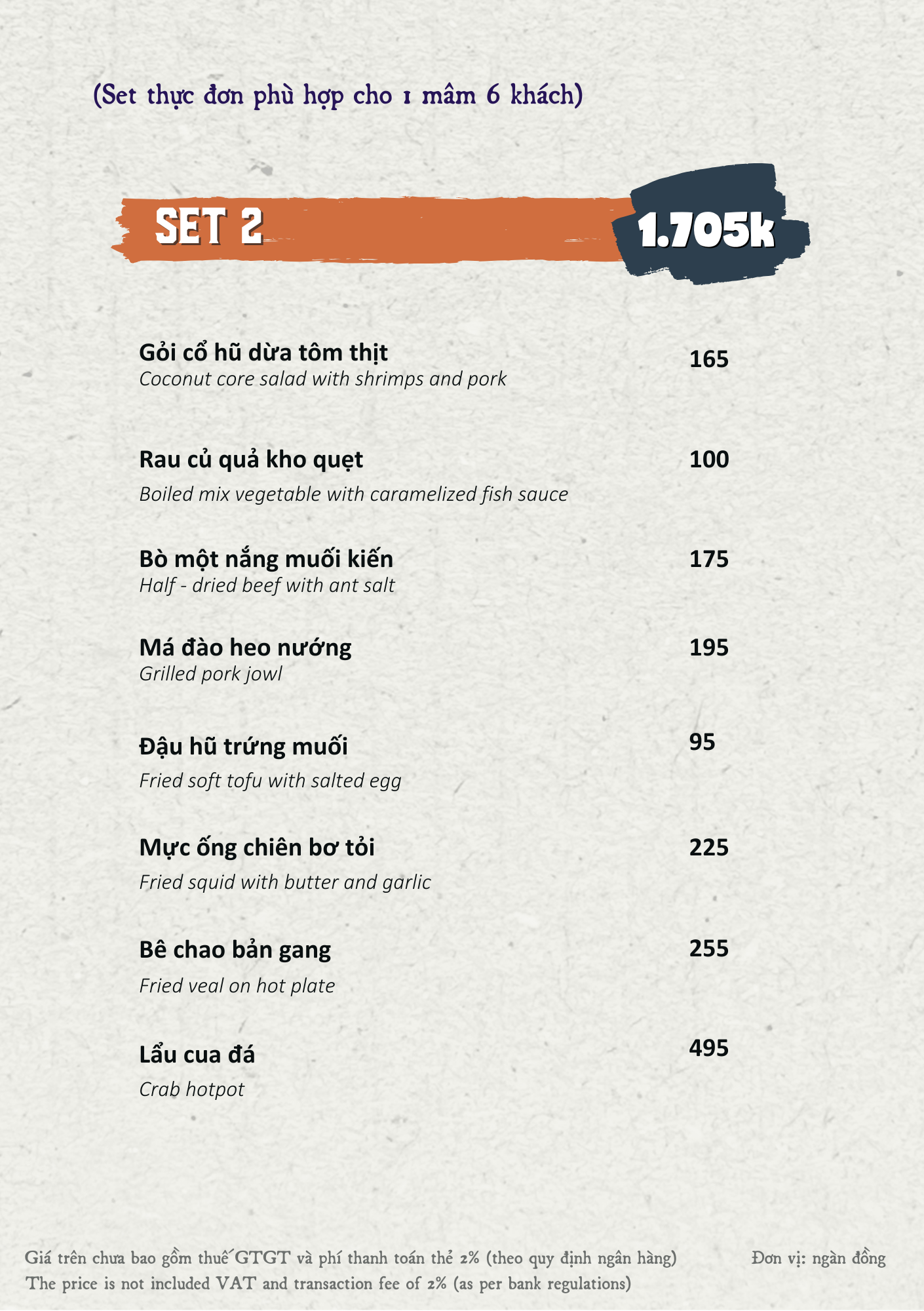Hẻm xin giới thiệu một số set món gợi ý để quý dzị dễ dàng lựa chọn hơn ạ