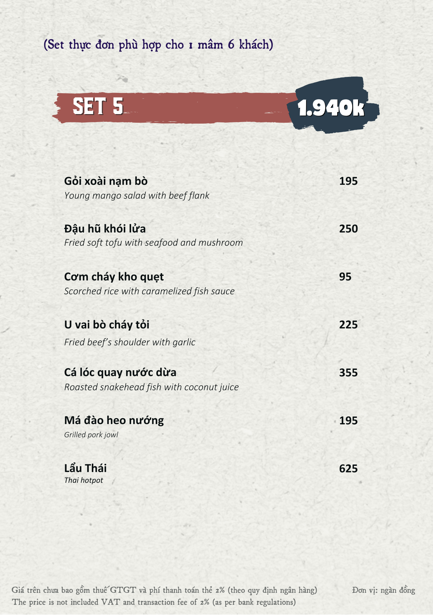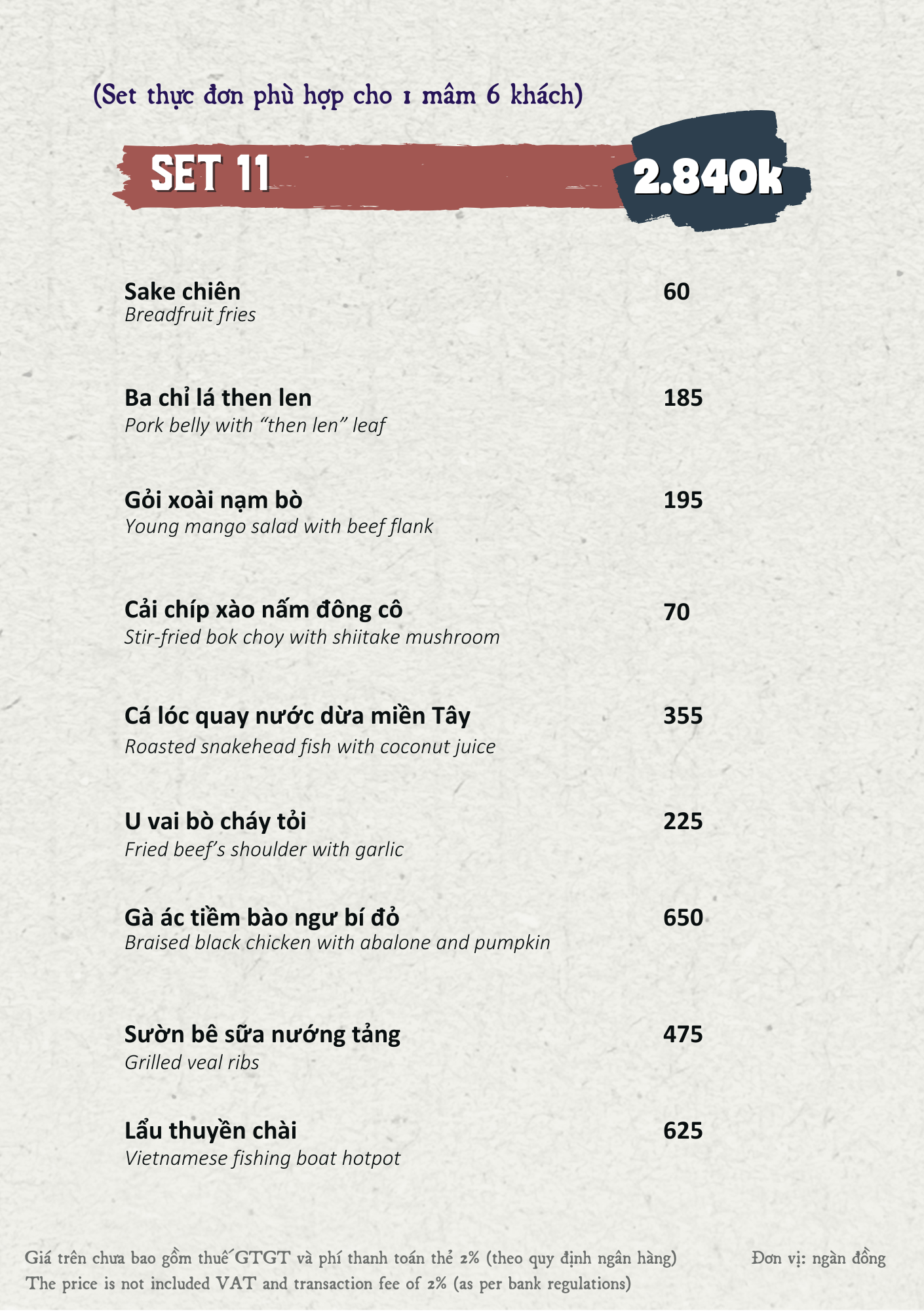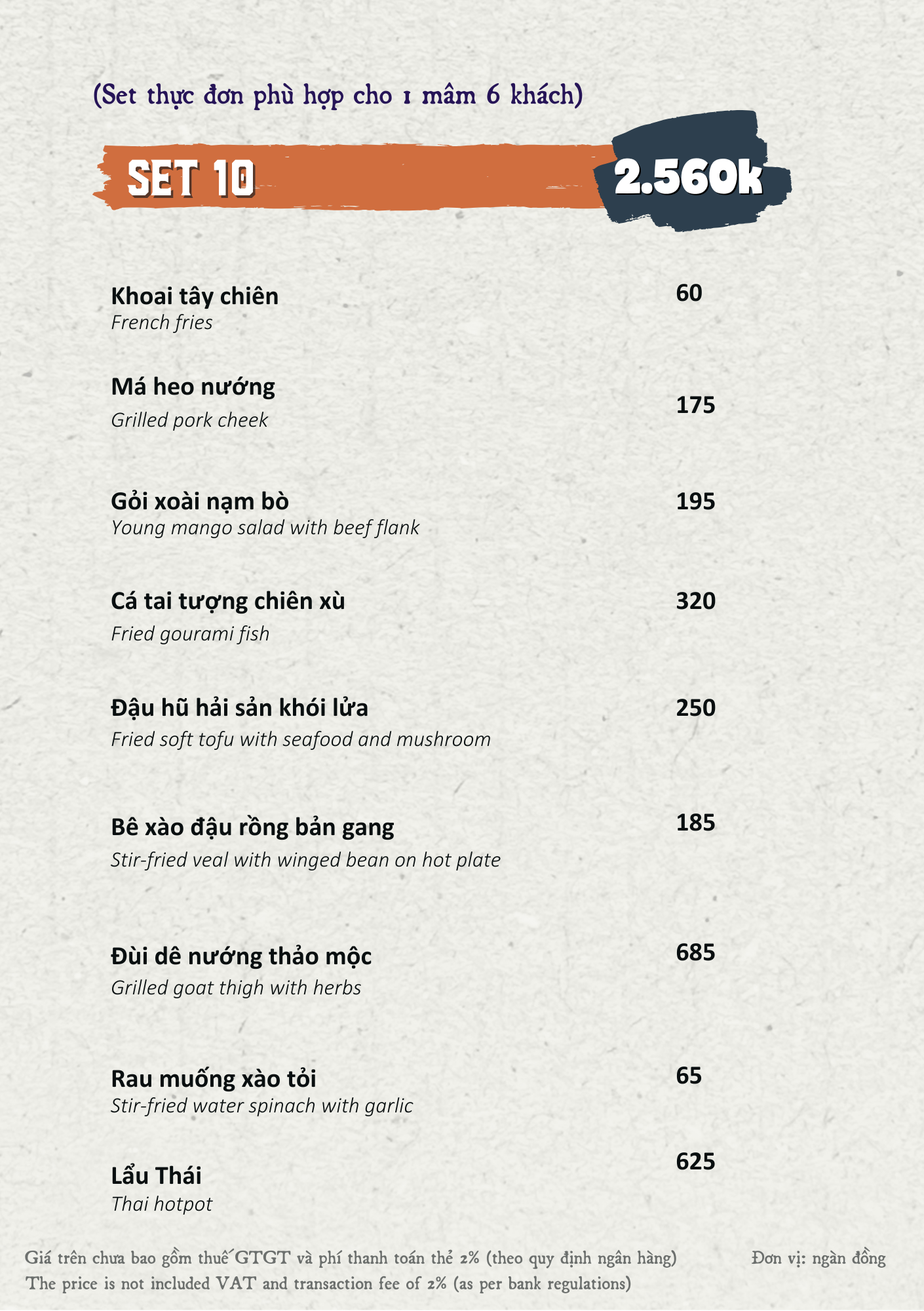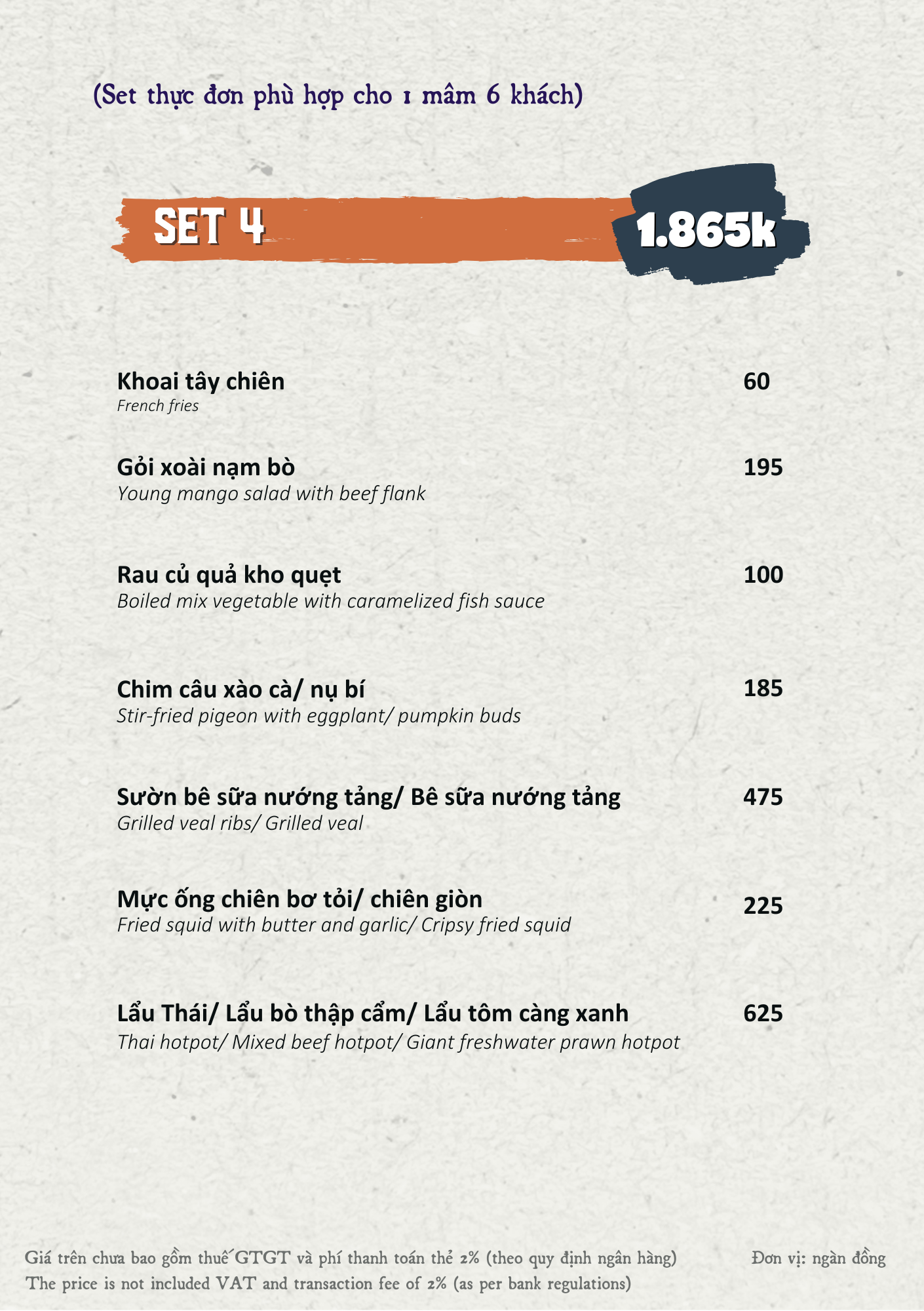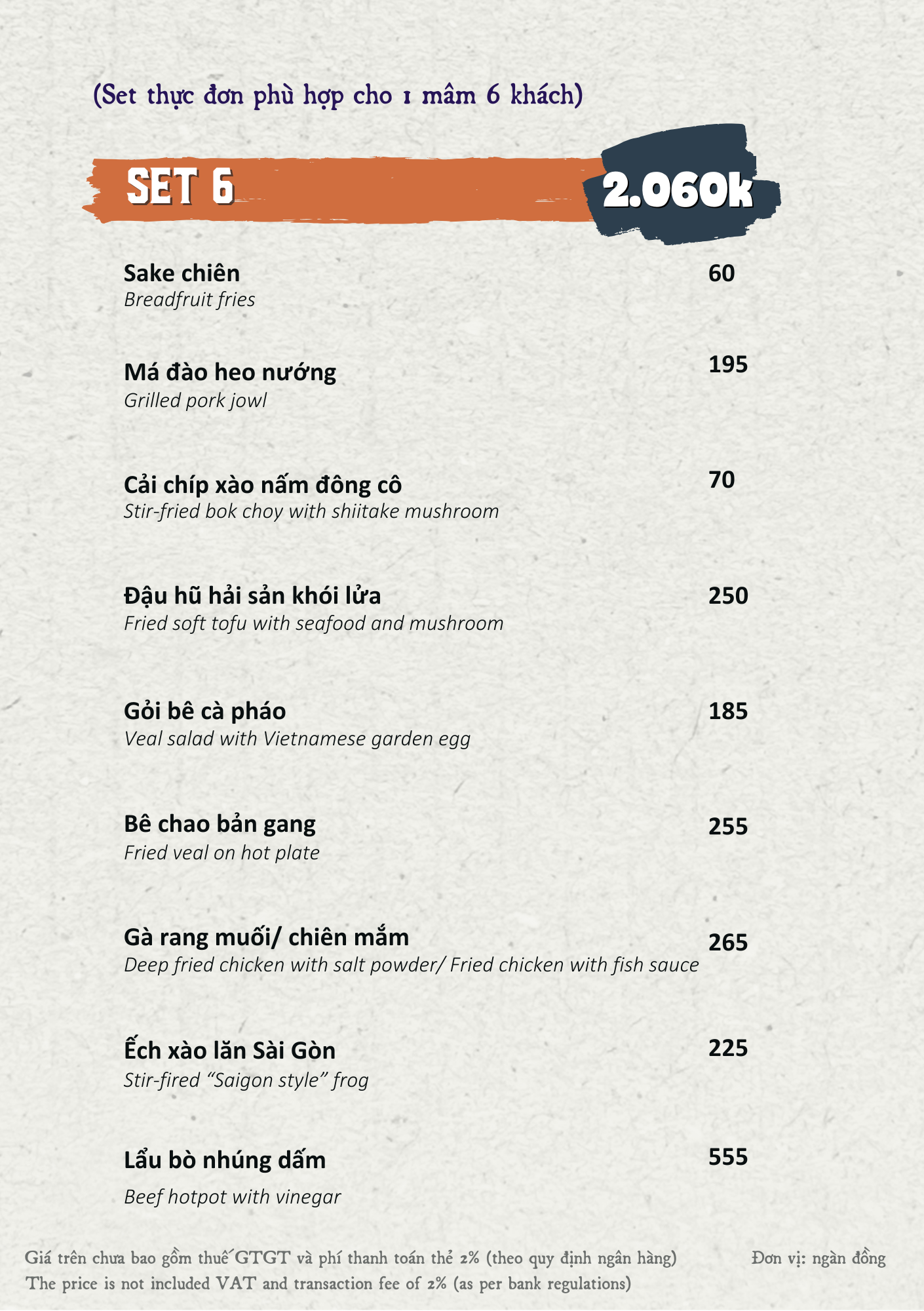 Hẻm xin giới thiệu một số set món gợi ý để quý dzị dễ dàng lựa chọn hơn ạ